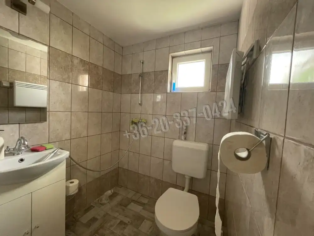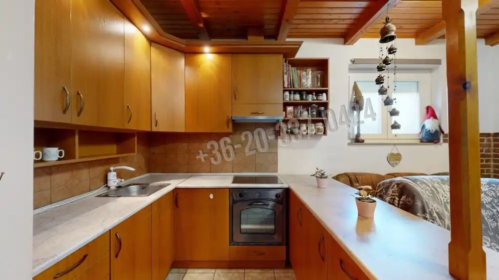 4) A különálló épület 2005-ben épült B30-as téglából, 15 cm-es szigeteléssel. Itt egy 77 m2-es lakás került kialakításra, elrendezése: 3 különnyíló szoba, konyha, fürdőszoba. Fűtése kandallóval és villanyradiátorokkal történik. Ez a lakrész teljesen újszerű, frissen festett, új konyha beépítése folyamatban.